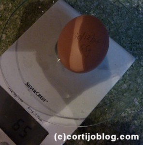 I was pleasantly surprised that our egg today weighs in at a respectable 65g – classifying it as large.