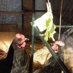 P.S. The chickens showed absolutely no interest in the CD but loved the “pecking at cabbage hanging from a peg” game. Looked for all the world like some manic children’s party.