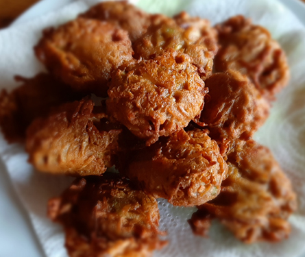 19th March 2020: This photo was taken 5 days after the start of lockdown and I was still experimenting with new things to cook. A couple of days before, I had lifted all of the small onions that were still growing and had chopped or sliced them for soups, food or the freezer. There were quite a few long, thin ones so I decided to slice them and use them for onion bhajis. Click here for the recipe: cook onion bhajis. The recipe was complicated by the fact that we didn’t have any gram flour and so we had to make our own by smashing and grinding up chickpeas.