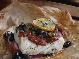 - Open the parcel carefully, as the steam will be hot, and serve the cod with the juices spooned over the vegetables.