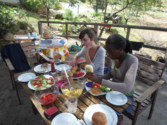 This was photo was taken during the almond harvest. We still had lots of tomatoes and salad vegetables so decided to cook some burgers on the barbecue.