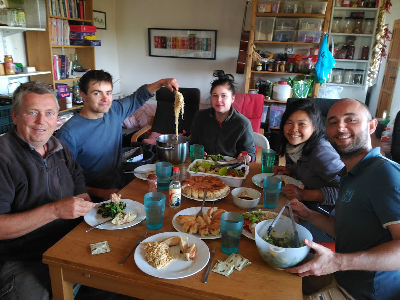 Diana from Hong Kong made the most amazing dumplings using her grandmother's recipe. Allan (scouser) far right has an amazing life as a whale watcher on ships around the world. Sam and Heather are some of our favorite volunteers.