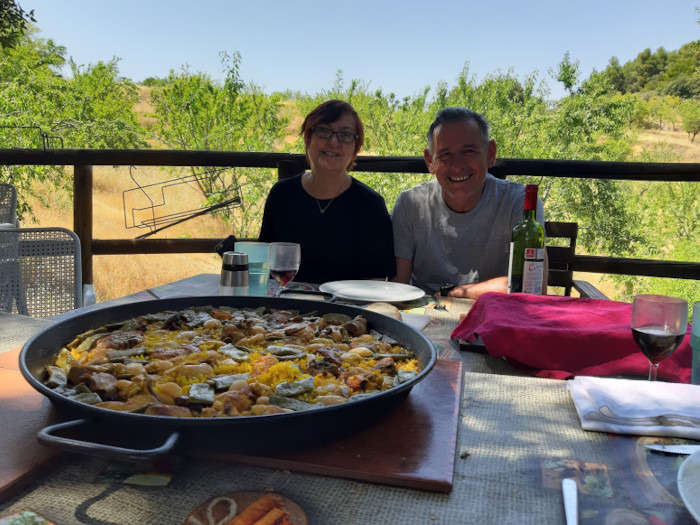 One of our favourite meals to prepare when there are people here is paella cooked on the barbecue. We generally prepare seafood, chicken and chorizo or vegetarian paellas, but this one was cooked by Nick. Nick and Fiona used to live in Valencia so this one is the traditional Valencian paella made with chicken and rabbit. It was delicious.
