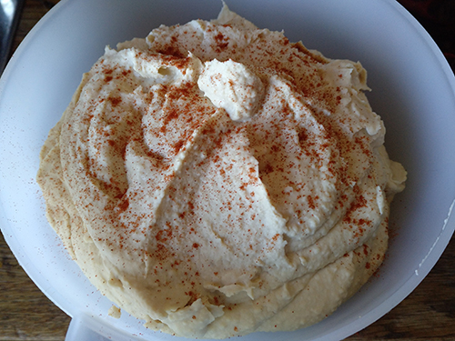 This is an adaptation of a recipe for hummus by Felicity Cloake from her series "How to make perfect ..." I found it tastes delicious without the bicarbonate of soda and just put all the ingredients in the blender. The word "Hummus" originates from the Arabic for chickpeas. Traditionally an Eastern Mediterranean dip, there are as many recipes for this dip as there are ways of spelling it. It can be served with pitta bread, flatbreads or crudité or as an accompaniment to a meal.