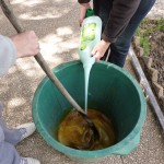 Basically, the idea is to warm 1 litre of water. You then add 1kg of caustic soda. It is important not to let the water get too hot or it will bubble over.
